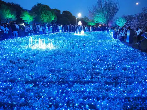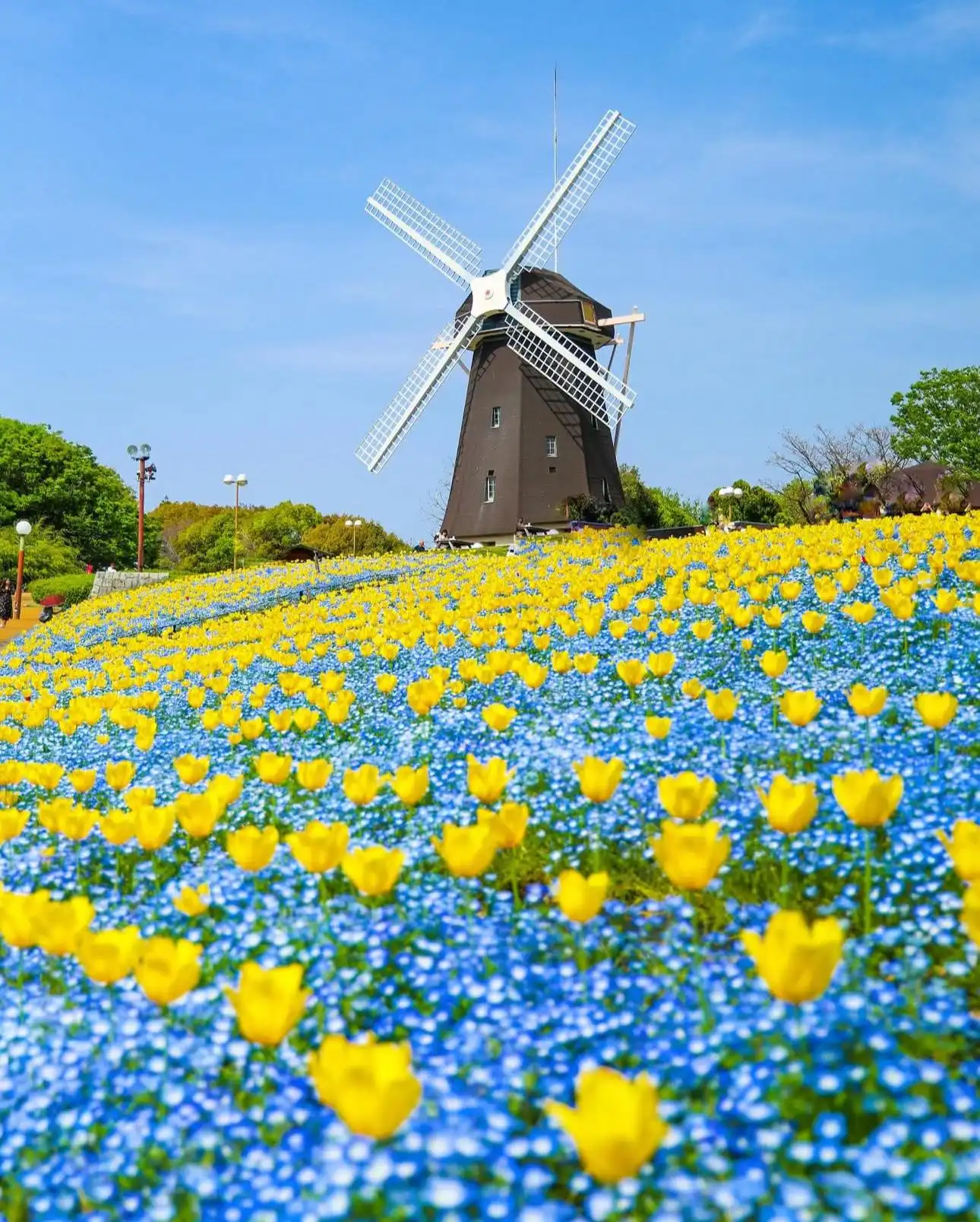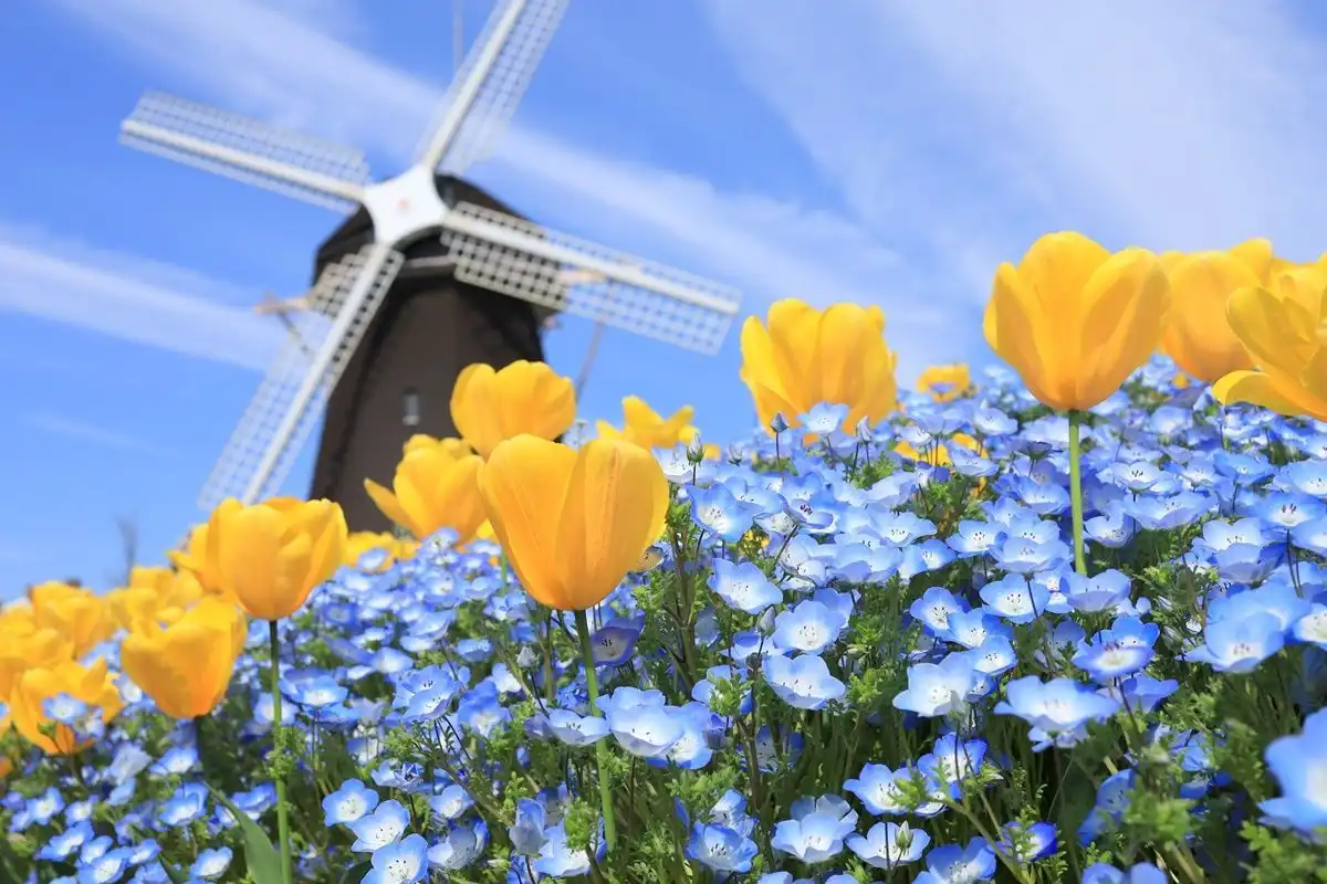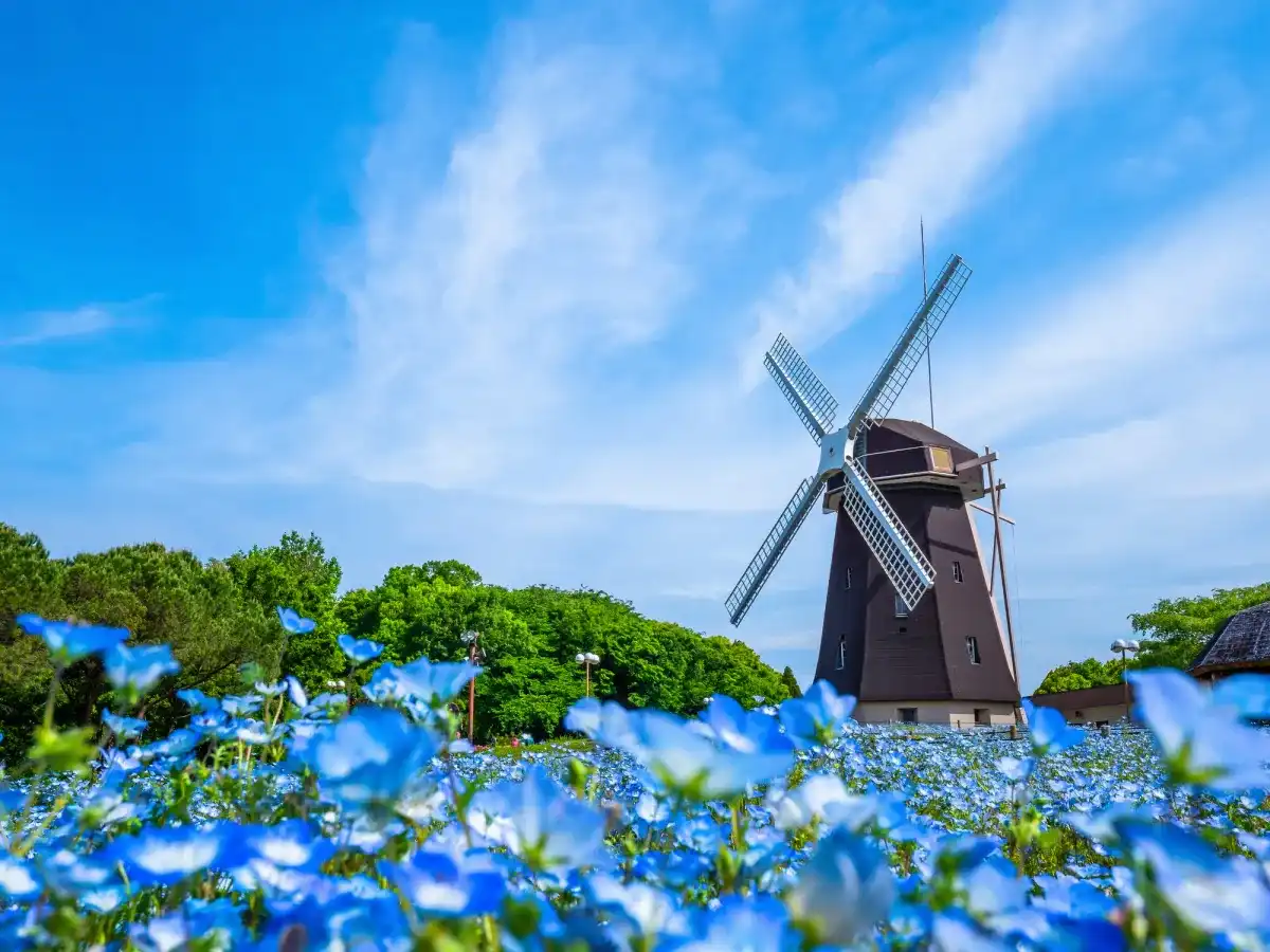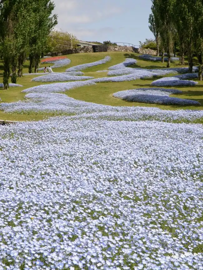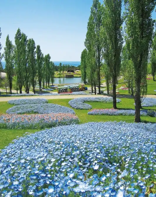 สวนดอกไม้ชื่อดังที่จัดแสดงดอกไม้หมุนเวียนตลอดปี ในฤดูใบไม้ผลิ “Hanahiroba” จะกลายเป็นทุ่งเนโมฟีลากว่า 1 ล้านต้น บนพื้นที่กว้างระดับ Tokyo Dome หนึ่งสนาม พื้นที่เป็นเนินลาดอ่อน ทำให้ถ่ายภาพเห็นดอกไม้ต่อเนื่องสุดสายตา และช่วงเย็นยังสามารถเที่ยวชมไฟประดับได้