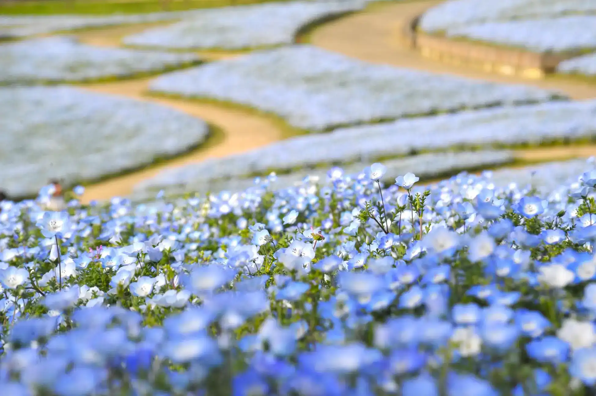 สวนดอกไม้ระดับไอคอนของญี่ปุ่นที่ทำให้ “เนโมฟีลา” โด่งดังไปทั่วโลก บริเวณ Miharashi Hill จะถูกปกคลุมด้วยเนโมฟีลากว่า 5.3 ล้านต้น ไล่เฉดสีฟ้าตั้งแต่ฟ้าอ่อนจนเกือบขาว เมื่อมองจากเชิงเขาจะเห็นเส้นขอบฟ้ากลืนกับทะเลดอกไม้ เกิดเป็นภาพพาโนรามาสุดอลังการ ช่วงเทศกาล FLOWERING บรรยากาศจะคึกคักเป็นพิเศษ