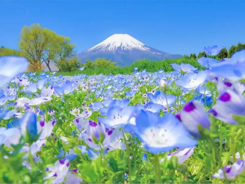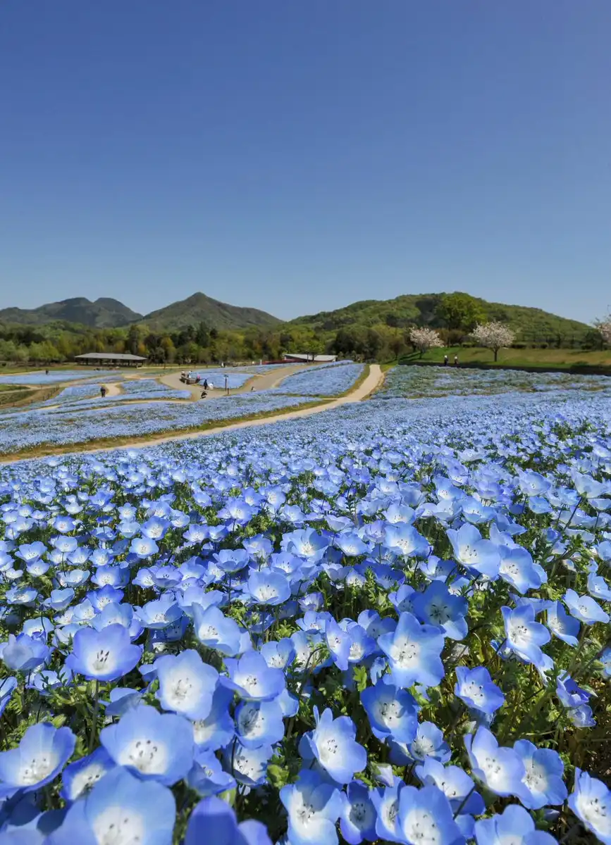 เมื่อฤดูใบไม้ผลิมาเยือน ญี่ปุ่นจะถูกย้อมด้วยสีฟ้าอ่อนของ “เนโมฟีลา” ดอกไม้เล็กๆ ที่พร้อมใจกันบานจนกลายเป็นทะเลสีฟ้าสุดสายตา ราวกับท้องฟ้าละลายลงบนผืนดิน ภาพเนินเขาสีครามตัดกับทะเล ภูเขา หรือแม้แต่ภูเขาไฟฟูจิ คือหนึ่งในวิวที่สวยที่สุดของฤดูกาลนี้เลยค่ะ!