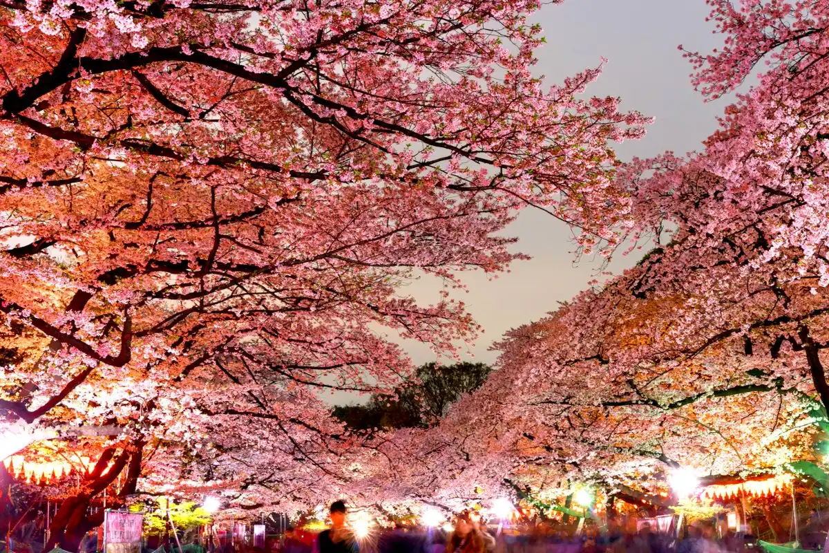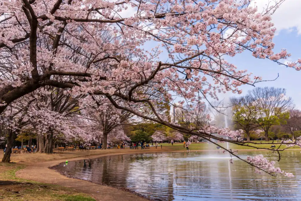 ต้น บรรยากาศคึกคักทุกปี พร้อมเทศกาล “Ueno Sakura Matsuri” ที่มีโคมไฟส่องสว่างในยามค่ำคืน ใกล้สวนยังมีสวนสัตว์และพิพิธภัณฑ์