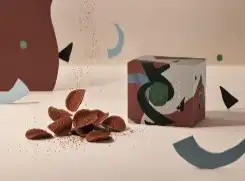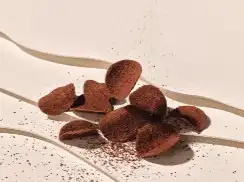 ชิปส์บางกรอบที่มีกลิ่นหอมของโกโก้และเคลือบด้วยผงช็อคโกแลตเข้มข้น