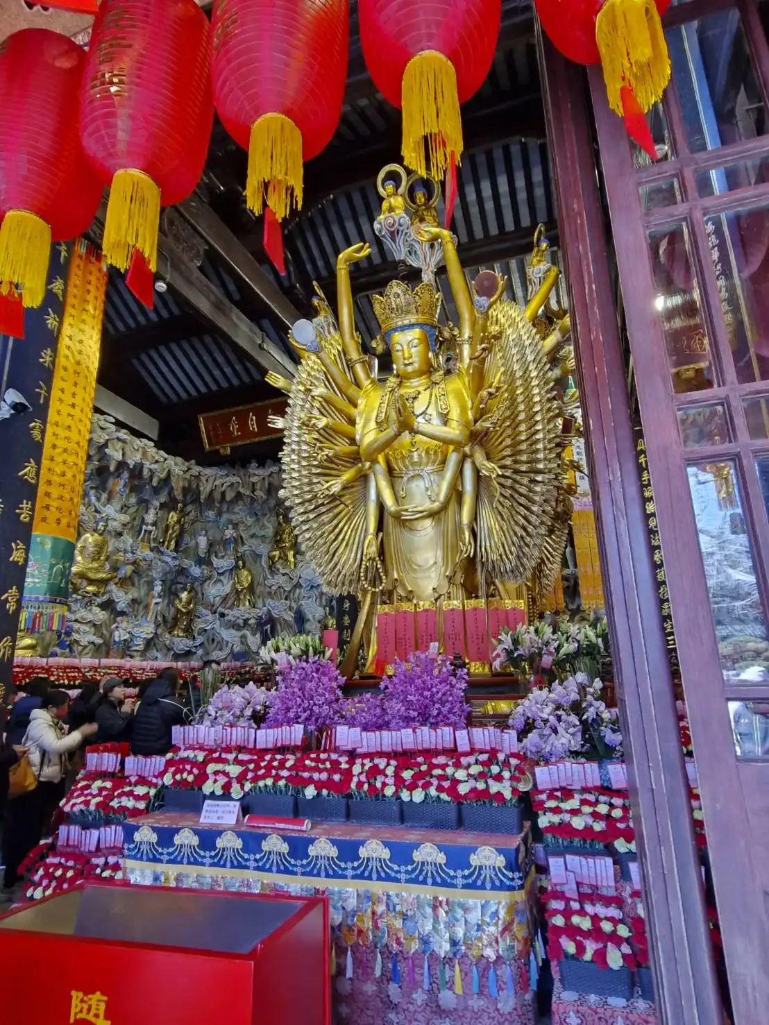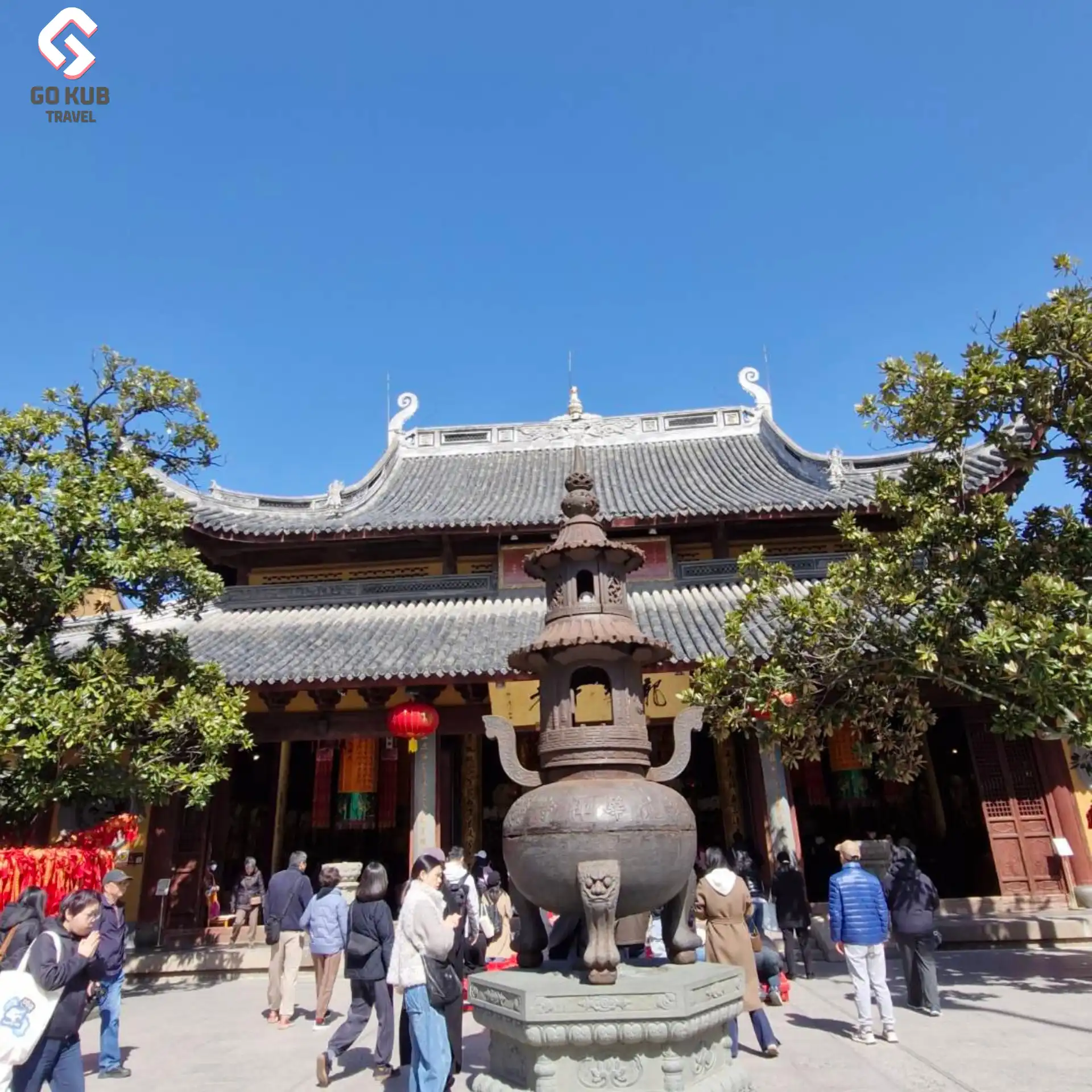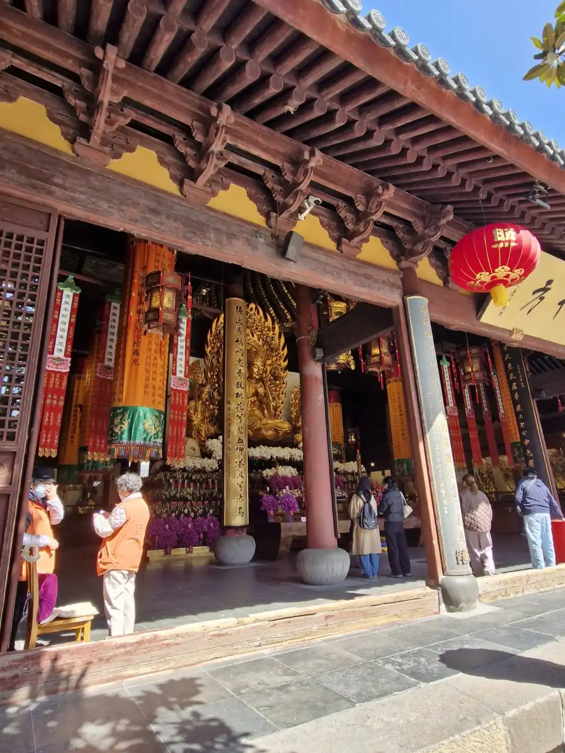 3.มหาวิหารพระศากยมุนี (Mahavira Hall - 大雄宝殿): วิหารหลักที่ประดิษฐานพระพุทธรูปพระพุทธเจ้าสามพระองค์ (อดีต-ปัจจุบัน-อนาคต) และเจ้าแม่กวนอิมพันมือ ด้านหลังเป็นภาพแกะสลัก 20 เทพและ 16 อรหันต์ ขอพรเรื่องการงาน ความสำเร็จ และความร่มเย็น