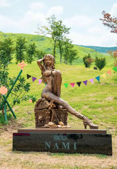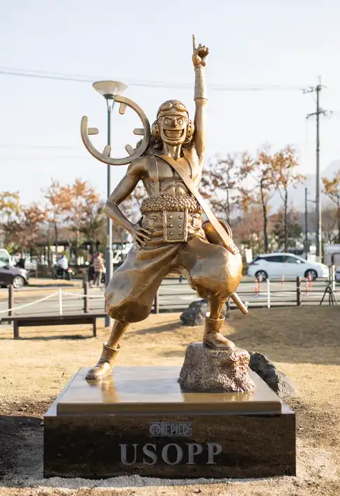 ลูฟี่ ตัวเอกของเรื่อง ถูกตั้งไว้หน้าศาลาว่าการจังหวัด เพื่อเป็นเกียรติในการที่อาจารย์โอดะบริจาคเงินช่วยเหลือจังหวัดหลังเหตุการณ์แผ่นดินไหว เป็นหนึ่งในจุดแลนด์มาร์กยอดนิยมที่แฟน ๆ วันพีซต้องแวะมาถ่ายรูป