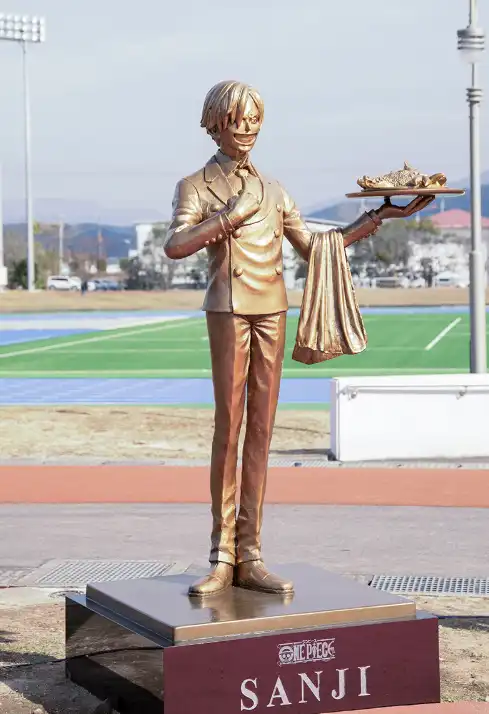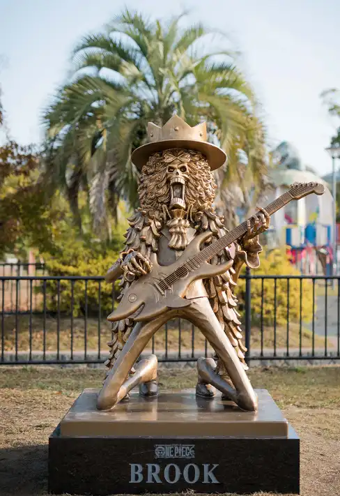 มีรอยมือประทับของอาจารย์โอดะผู้สร้างวันพีชอยู่ที่ด้านล่างของรูปปั้น