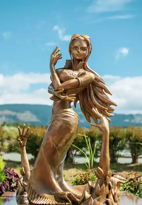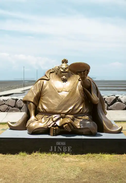 จินเบ นักรบฉลามวาฬ ตัวแทนแห่งมหาสมุทร ตั้งริมทะเลเพื่อสะท้อนความผูกพันต่อผืนน้ำและสื่อถึงความสามัคคีของผู้คนบนแผ่นดินและทะเล