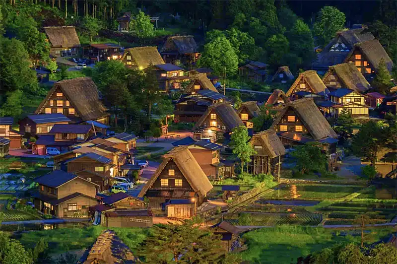 ชิราคาวาโกะ หมู่บ้านโบราณญี่ปุ่น มรดกโลกอายุเก่าแก่กว่า 250 ปี ตั้งอยู่ในหุบเขาอันเงียบสงบในจังหวัดกิฟุ มีเอกลักษณ์โดดเด่นด้วยบ้าน Gasshō-zukuri (合掌造り) หรือบ้านทรงจั่วสูงแบบดั้งเดิม ให้ความรู้สึกอบอุ่นเหมือนได้ย้อนยุคกลับไปสู่ญี่ปุ่นสมัยก่อน หมู่บ้านแห่งนี้สามารถมาเที่ยวได้ทุกฤดู แต่ถ้ามาฤดูหนาวจะได้พบกับเทศกาลงานไฟประดับ ที่จัดเพียงปีละ 1 ครั้ง ทั่วทั้งหมู่บ้านจะเต็มไปด้วยแสงไฟยามค่ำคืนท่ามกลางหิมะสีขาวโพลน มีความสวยงามตระการตา  ที่ต้องไปเห็นกับตาให้ได้สักครั้ง