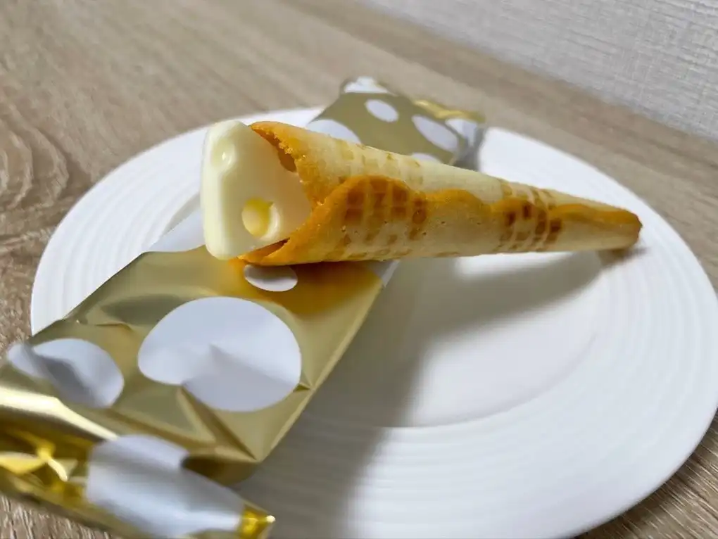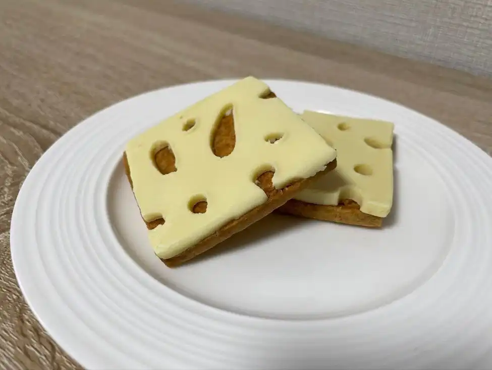เมนูถัดมาบิสกิตเนยกรอบ ๆ ราดด้วยชีสช็อคโกแลต เมื่อเปิดห่อออกจะได้กลิ่นหอมโชยออก และยังมีรูปร่างที่น่ารัก เพราะรูปร่างเหมือนชีส