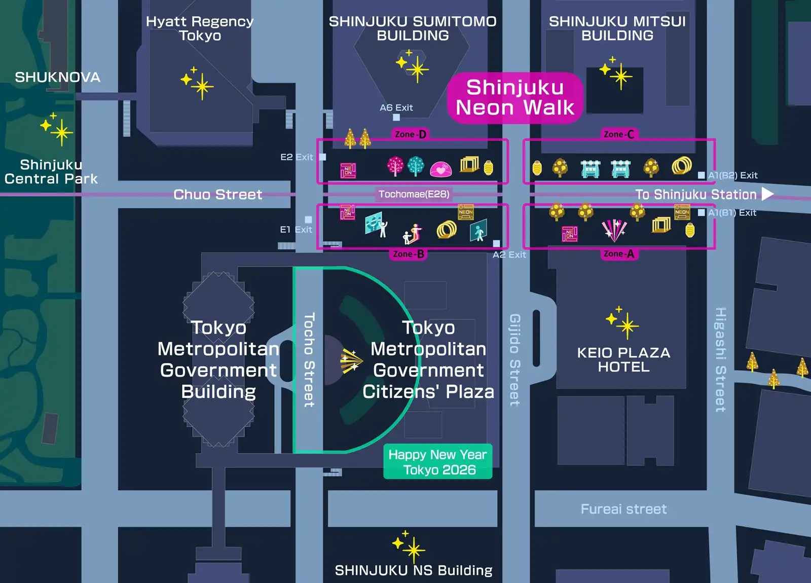 เพื่อให้คุณสนุกกับการเดินเที่ยวชินจูกุมากยิ่งขึ้น เราขอแนะนำ Shinjuku Illumination Digital Map แผนที่ดิจิทัล 2 ภาษา (ญี่ปุ่น / อังกฤษ) พร้อมภาพประกอบต้นฉบับที่ออกแบบมาเฉพาะสำหรับงานนี้
