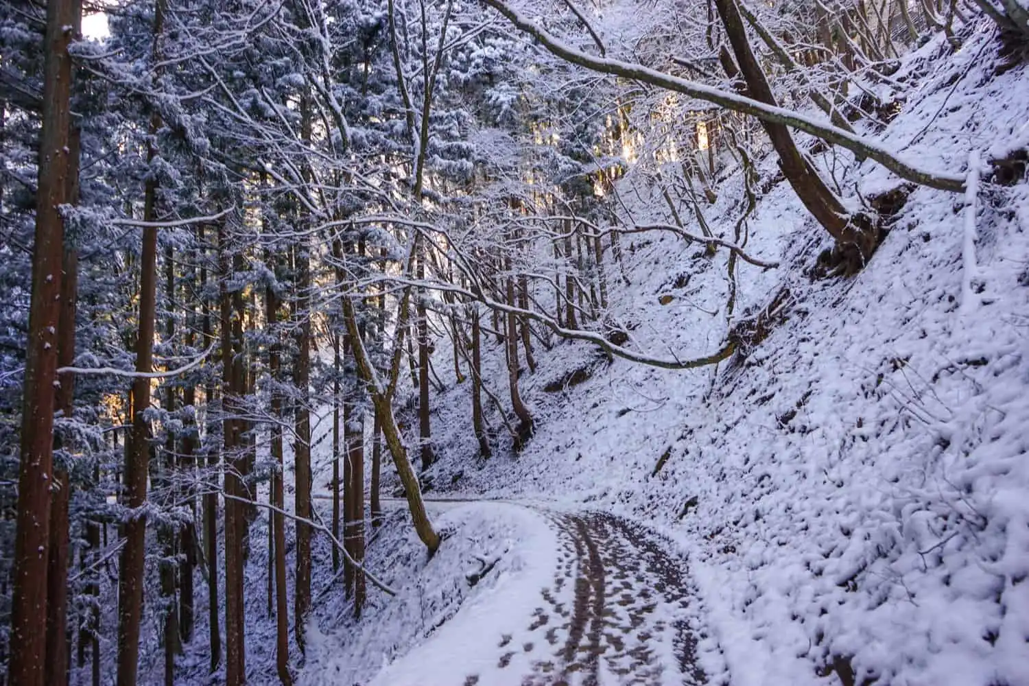 • เส้นทางเดินป่าหิมะ เมื่อเดินทางเข้าไปต้องเดินผ่านป่าสนที่ปกคลุมด้วยหิมะประมาณ 25-30 นาที